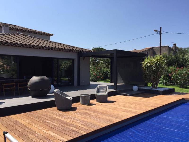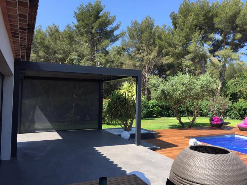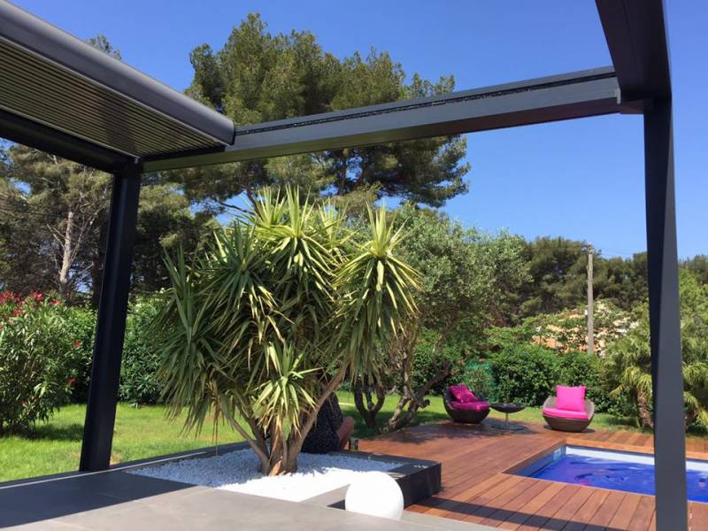 Pose d'une pergola bioclimatique à lames orientables et rétractables à Six-Fours dans le Var : bénéficiez de conseils personnalisés et d'un devis gratuit, clair et précis en nous contactant par mail ou par téléphone, au 04 26 93 99 60.