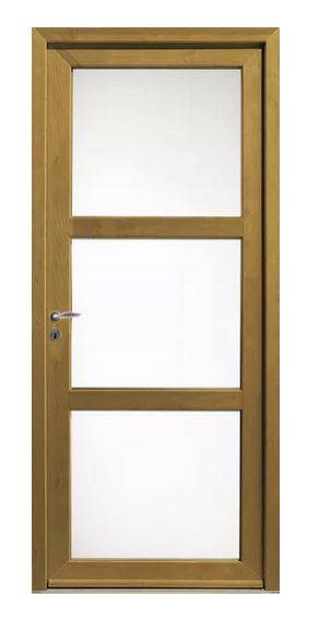 Dotée de deux traverses intermédiaires, d'une serrure à relevage et d'un double vitrage feuilleté (finition et décor du verre au choix), blanche, colorée ou imitation bois, adaptée pour une entrée moderne ou plus traditionnelle, plusieurs configurations sont possibles.