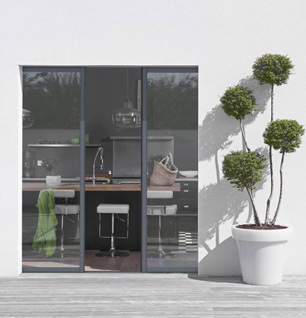 Matériau léger et robuste pour durer, offrant une excellente isolation thermique et phonique, l'aluminium permet la fabrication de cadres fins, maximisant la surface vitrée et inondant de lumière, l'espace à l'intérieur.