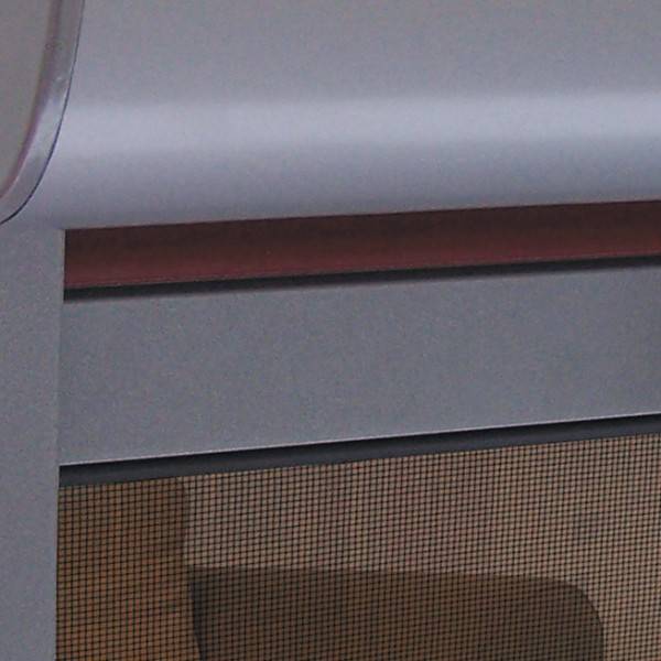 Moustiquaire du volet roulant noire, en fibre de verre-PVC, avec lame finale, sa manoeuvre se fait par tirage. Remontée lente avec frein, son verrouillage en bas se fait automatiquement, par système push-push.